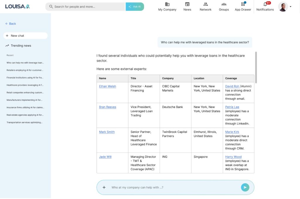 - Finally, enable your dealmakers to navigate employee, board, and client networks with a simple tap on their phone.
